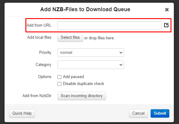 There are three main ways to add NZBs in NZBGet: